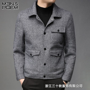 2021冬季新款男士长袖翻领按扣多口袋休闲男款外套双面呢大衣男