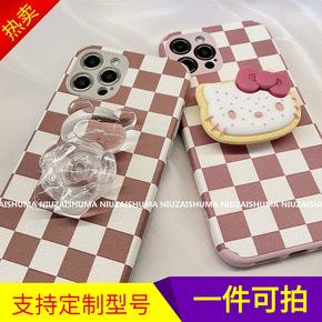 适用凯蒂猫支架vivos10手机壳s7s9y30/y53s/y52s棕白格纹x60iqooz