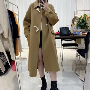 新款欧货韩版双面羊绒大衣女娃娃领牛角扣秋冬2022年羊毛呢外套