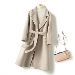 双面呢羊绒大衣女中长款宽松2022秋冬新款过膝高端羊毛呢外套系带