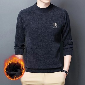 22冬季新款加绒加厚针织休闲雪尼尔毛衣纯色男士中青年爸爸毛衣