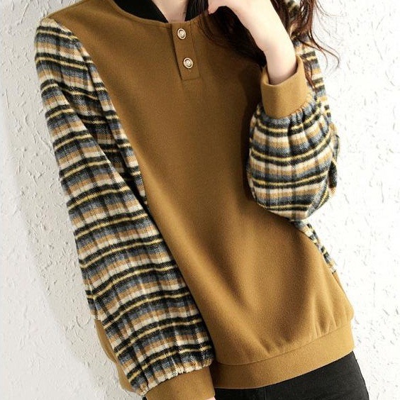 欧货2021秋冬新款时尚条纹拼接假两件休闲复古潮流宽松百搭女卫衣