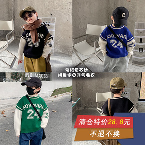 【清仓款不退换】儿童冬款加厚假两件拼色毛衣男童包芯纱针织衫