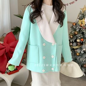 22年秋冬新品短款双排扣冰淇淋绿色双面手缝羊毛大衣小个子外套女
