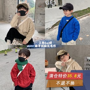 【清仓款不退换】儿童加厚绵羊绒毛衣男女童宝宝麻花圆领针织衫潮