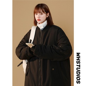 黑色棒球服棉服女2021新款休闲潮ins外套韩版宽松原宿港风棉衣冬