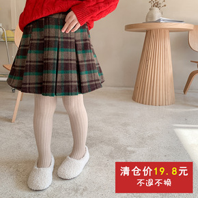 【不退不换清款】女童加绒短裙冬款儿童韩版毛呢格子百褶半身裙子