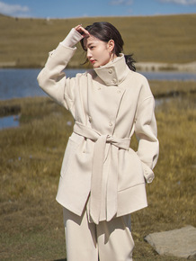 冬季新款双面羊绒大衣 中长款立领腰带宽松版型羊毛双面呢外套女