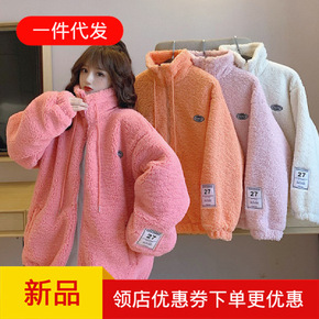 粉色仿羊羔毛外套女秋冬季加厚2021新款韩版学生小个子棉服ins潮