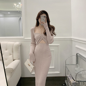 大姐姐 新季女神 系带挂脖包臀连衣裙/显瘦纯欲短上衣