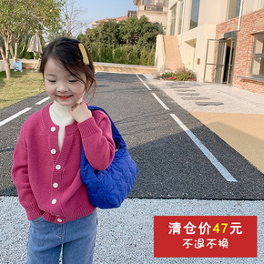 【不退不换清款】女童假两件撞色毛衣秋冬儿童半高领气质针织开衫