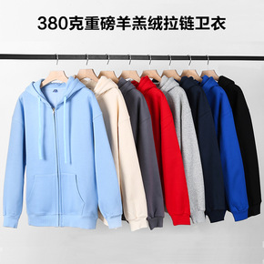380g重磅oversize羊羔绒保暖连帽拉链卫衣男女纯色宽松潮牌外套秋