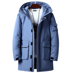 青年羽绒服男中长款连帽男装外套休闲加厚白鸭绒冬季户外工装跨境