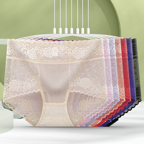 新款性感蕾丝女士提臀内裤中高腰大码无痕网纱抗菌纯棉档三角内裤