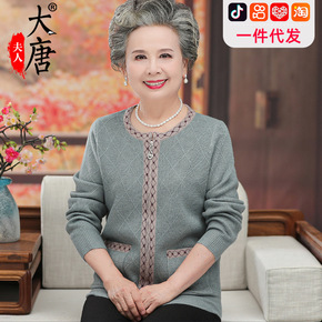 中老年人春装奶奶长袖针织上衣妈妈格子衣服老人薄款开衫外套女