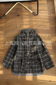 实拍2021新款千鸟格风衣式毛呢外套女秋冬小个子短款复古呢子大衣