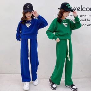 女童炸街时尚休闲运动套装秋冬新品倒三角收腰卫衣阔腿裤两件套潮