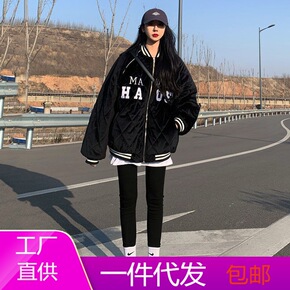 秋冬装2021美式复古街头炸街酷少女情侣款夹棉加厚棒球服棉服外套