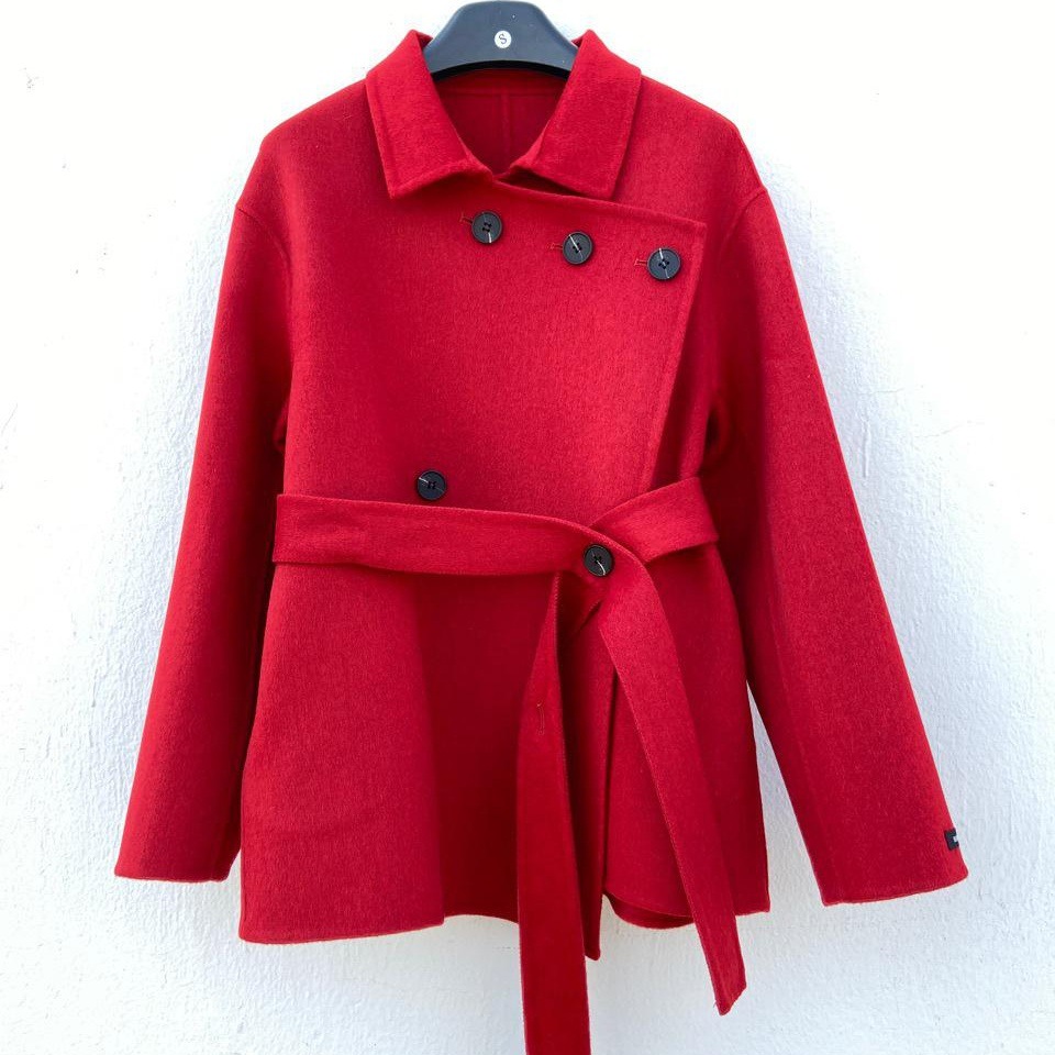 冬季复古双面羊毛大衣系女腰带宽松型羊毛纯色韩版翻领小个子外套