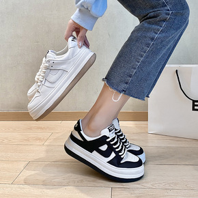 【包邮】双鞋带chic风增高厚底板鞋女真皮牛皮低帮鞋小白鞋2022