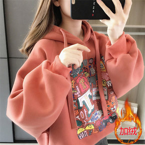 女童加绒卫衣秋冬2022新款洋气儿童加厚春秋中大童宽松连帽上衣潮