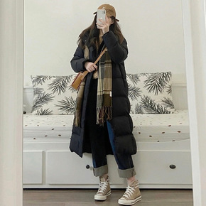 2022年冬季新款韩国东大门宽松黑色过膝长款中戏男女羽绒服女潮款