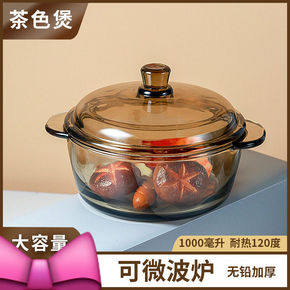 茶色玻璃碗带盖耐热带盖汤碗家用玻璃煲泡面碗水果沙拉面碗玻璃碗