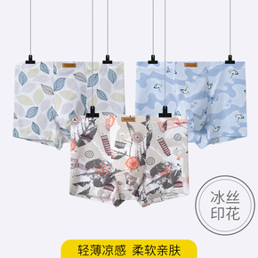 男士内裤2022新款印花冰丝内裤男批发凉感简约时尚四角平角裤批发