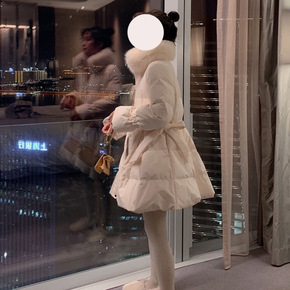 2022年新款大毛领羽绒棉服女收腰显瘦中长款韩版时尚宽松棉衣外套