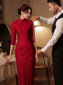 旗袍敬酒服新娘红色女结婚长袖礼服女连衣裙长款秋冬季改良中国风