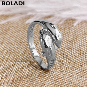 S925纯银可爱小海豚戒指女款生日礼物 幸福双海豚恋爱小清新指环