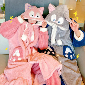 睡衣女冬珊瑚绒可爱玲娜贝儿加绒加厚长款睡袍可外穿家居服套装