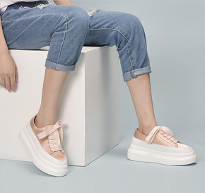 2022年新款厚底小白鞋女内增高婚礼神器松糕鞋绸缎板鞋。