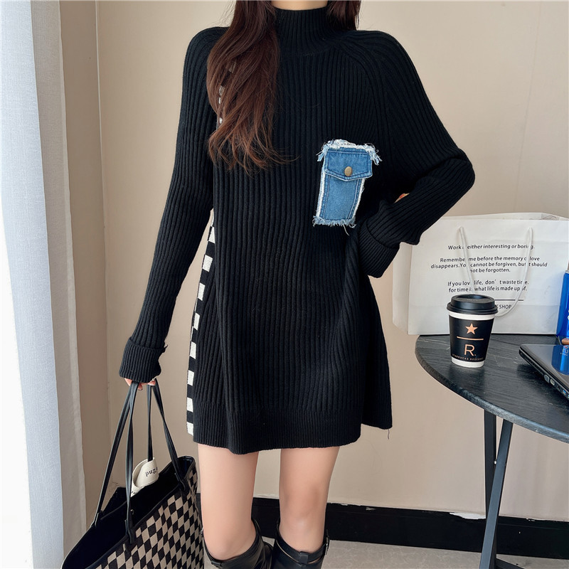 中长款套头高领毛衣女2021秋冬新款宽松时尚设计感小众针织打底衫