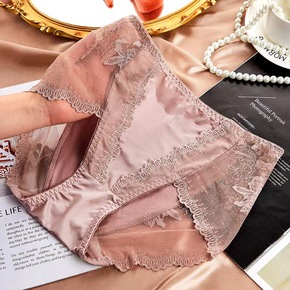 高端绸缎莫代尔中高腰内裤女士全棉裆包臀蕾丝大码新品秋冬三角裤