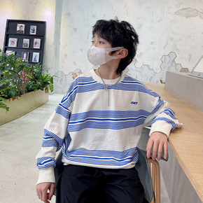 DK潮牌2022春秋新款日系男童条纹卫衣中大童儿童休闲帅气圆领上衣