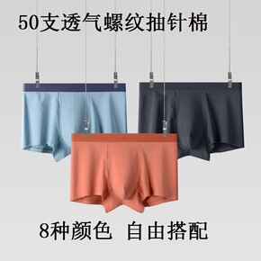 2022新款条纹棉男士内裤舒适无痕四角裤透气弹力焦内同款平角短裤