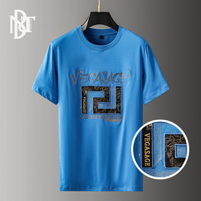 2022春夏新款潮牌贴布绣花烫钻体恤上衣打底衫欧洲站男装短袖T恤