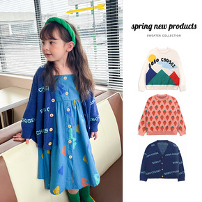 儿童毛衣 2022春夏新品欧美风女童字母长袖套头针织纽扣开衫