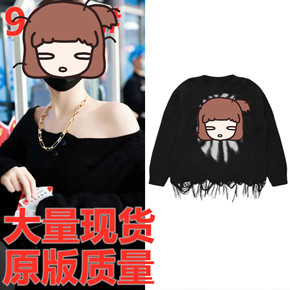 虞书欣2022同款秋春秋新款流苏毛衣黑色提花针织宽松开衫外套女