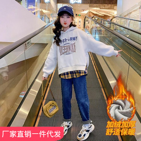 女童卫衣秋冬款2021新款儿童加绒上衣秋装韩版中大童洋气秋季加厚
