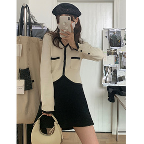 楠涛小香风设计感收腰短款针织开衫女2022秋季V领显瘦毛织上衣
