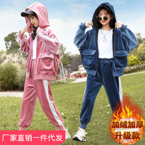 金丝绒套装女时尚2021新款秋冬欧洲站高领卫衣阔腿裤运动两件套潮