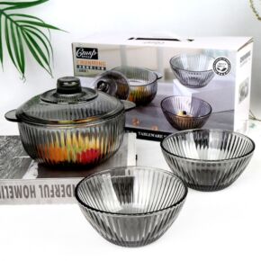 欧式茶色双耳玻璃碗带盖沙拉碗套装竖纹泡面碗水晶煲会员礼品批发
