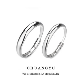 创誉首饰s925情侣戒指一对男女光面素圈网红简约对戒指可刻字礼物