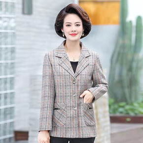 女士西装领衣服秋季中老年韩版百搭薄款外套休闲修身时尚格子上衣