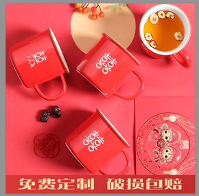 红色婚庆套装漱口杯子结婚家用中式陶瓷水杯情侣对杯商务礼盒礼品