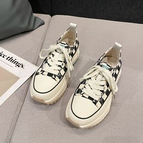 厚底系带帆布鞋女2022年新款低帮增高小白鞋学生百搭休闲鞋66-305