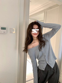 YUYUREAL-四色锁骨开衫!设计感斜门襟长袖羊毛针织开衫女春百搭