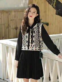 百搭气质减龄撞色格纹坎肩小马夹冬装韩版排扣勾花镂空针织背心女